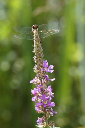 Keywords: red dragonfly dragonfly red loosestrife wetlands near shore bank insect close wing nature flora and fauna summer