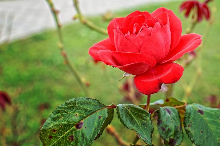 Keywords: red rose rose blossom bloom red rose bloom flower thorns garden rose symbol love beauty scented rose