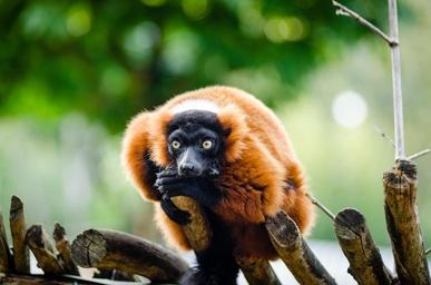 Keywords: red ruffed lemur wildlife madagascar nature portrait perched looking exotic rainforest primate mammal fur
