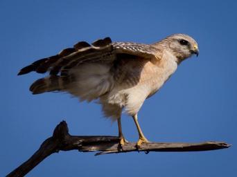 Keywords: red-shouldered hawk raptor bird hawk predator wildlife nature hunt talon perched feathers