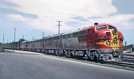 MAKE A MEME View Large Image These are Roger Puta's photographs. ATSF 37L (F7A) with Train 23, The Grand Canyon, at Streator, IL in July 1963. Note, the "L" is above the buffer. These are Roger Puta's photographs. ATSF 37L (F7A) with Train 23, The ...