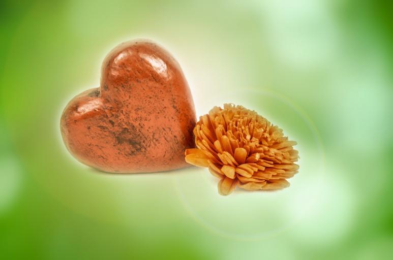 Keywords: red wood heart isolated flowers give celebration gift flower loving engraved romantic valentine wooden romance present orange green background