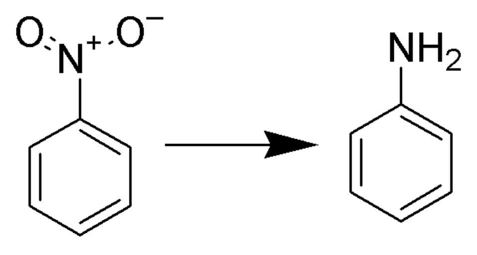 Keywords: Reduction NitroareneToAniline.png Generalized scheme of a Nitro-group reduction Own work High-resolution PNG; ChemDraw / The GIMP 2006-11-24 ~K Public domain PD Nitro reduction Reactions of nitrobenzene Reactions of aniline
