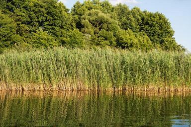 Keywords: reed lake water bank nature mirroring landscape rush teichplanze lakeside mood