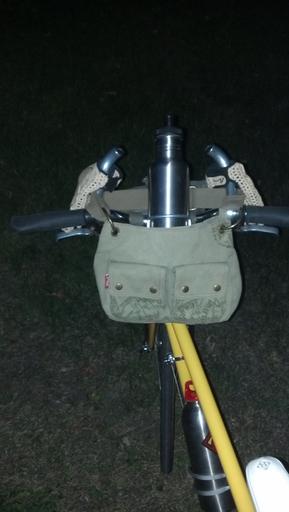 Keywords: marco-bicycle marcobicycle rebuild bike bicycles canvas yellow-bikes yellowbikes panniers bags canvas-bags canvasbags outdoor The wide strap of the man-purse/canvas bag isn't a problem while gripping the inner bars and completely out of the way of the main controls. Good Karma :o) The wide strap of the man-purse/canvas bag isn't a problem while gripping the inner bars and completely out of the way of the main controls. Good Karma :o) |