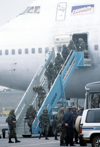 Keywords: Reforger 90 Fedex B747 Luxembourg DF-ST-91-00040.jpg Members of the 1st Battalion 22nd Infantry 10th Mountain Division debark from a 747 aircraft at Luxembourg International Airport The troops are en route to West Germany during exercise REFORGER '90 1990-01-07 http //www defenseimagery mil/imagery html;jsessionid 1E8D60B597B0147A7841E405BE5D755C a search s 20DF-ST-91-00040 chk 6cfe0 guid cb0e6189911b098b61959ff0b8635e6d5edae996 www defenseimagery mil VIRIN DF-ST-91-00040 Master Sergeant Bill Thompson USAF PD-USGov REFORGER 1990 Boeing 747 at Luxembourg-Findel International Airport Boeing 747 FedEx Express Uploaded with VicuñaUploader 1990 at Luxembourg-Findel International Airport |
