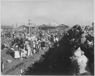 | Keywords: Refugees crowd railway depot at Inchon, Korea, in hopes they may be next to get aboard for trip further south and... - NARA - 520784.tif Scope and content General notes Use War and Conflict Number 1476 when ordering a reproduction or requesting information about this image 520784 Local identifier 80-G-425418 Department of Defense Department of the Navy Naval Photographic Center 09/18/1947 - Still Picture Records Section Special Media Archives Services Division NWCS-S National Archives at College Park 8601 Adelphi Road College Park MD 20740-6001 1951-01-03 Record group Record Group 80 General Records of the Department of the Navy 1804 - 1983 Record group ARC 409 General Photographic File of the Department of Navy compiled 1943 - 1958 documenting the period 1900 - 1958 Series ARC 520587 File unit File unit ARC Variant control numbers NAIL Control Number NWDNS-80-G-425418 yes Other versions NARA-cooperation PD-USGov Black and white photographs Transport in Incheon 1951 in Korea Refugees |