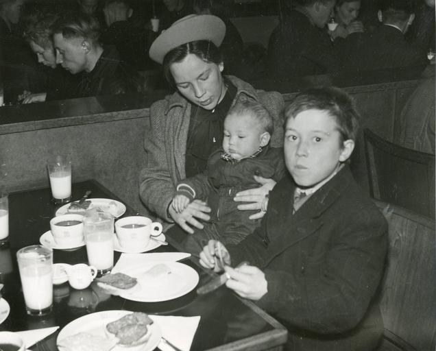 | Keywords: andre verdenskrig andreverdenskrig 2. verdenskrig 2verdenskrig nordnorske flyktninger nordnorskeflyktninger nordmenn i sverige under krigen nordmennisverigeunderkrigen world war ii worldwarii vårslipp vårslipp 2012 vårslipp2012 tvangsevakuering people indoor blackandwhite black and white Flyktninger fra Nord-Norge. I månedene før jul 1944 ankom til Sverige et større antall flyktninger nordfra. De hadde lykkes å unnkomme fra den tyske tvangsevakuering i Finnmark og Troms. På veien til den norske mottagercentralen på Kjesäter passerte flyktningene Stockholm, hvor de under oppholdet ble servert mat på Centralstasjonens restaurant. Bildet viser en norsk mor med sine to barn. RA/PA-1209/Uc/65/1-2/S 5433 Flyktninger fra Nord-Norge. I månedene før jul 1944 ankom til Sverige et større antall flyktninger nordfra. De hadde lykkes å unnkomme fra den tyske tvangsevakuering i Finnmark og Troms. På veien til den norske mottagercentralen på Kjesäter passerte flyktningene Stockholm, hvor de under oppholdet ble servert mat på Centralstasjonens restaurant. Bildet viser en norsk mor med sine to barn. RA/PA-1209/Uc/65/1-2/S 5433 Flyktninger fra Nord-Norge. I månedene før jul 1944 ankom til Sverige et større antall flyktninger nordfra. De hadde lykkes å unnkomme fra den tyske tvangsevakuering i Finnmark og Troms. På veien til den norske mottagercentralen på Kjesäter passerte flyktningene Stockholm, hvor de under oppholdet ble servert mat på Centralstasjonens restaurant. Bildet viser en norsk mor med sine to barn.