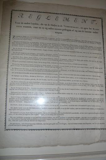 | Keywords: Regelement In den Groene Tuin.JPG Rules and Regulations of the Hofje In den Groenen Tuin in Haarlem the Netherlands Reglement van het Hofje In den Groenen Tuin in Haarlem De tekst van het reglement Reglement voor de oude luyden die op de Hofjes in de Veerstraat en agter het Klokhuis woonen waar na zy zig zullen moeten gedragen of zig aan de boetens onderwerpen 1 Zij moeten 50 Jaaren oud Roomscatholyk en geezint Jansenist of zo genaamd van de Cleregie zyn ook in staat om nog iets te kunnen winnen om niet geheel tot last van de Hofjes te koomen zonder schulden zyn en blyken geven dat het met toestemming van hun Kinderen of Familie is zo zy die nog mogten hebben 2 Voor en al eer iemand hier op komen mag moeten zy voor een douceur voor de Hofjes geven Vyftig Guldens en op de Hofjes brengen een behoorlyk bed Peuluw en Onderkleed ses Bedlakens ses Sloopen en Catoene Deken twee dito Wollen ses nieuwen Hembden een Kasje Potten en Pannen behoorlyke Kleederen van Linnen en Wollen na genoegen van de Juffr Regentessen die dit eerst moeten nazien en opschryven en al zyn de Vrouwen op het Hofje moeten zy gedogen dit na verkiezing der Juffr Regentesse word naa gezien of zy alles hebben 3 En dit alles als ook het geen zy mogten winnen krygen of erven moet na hun dood ten behoeven van het Hofje zyn waar op zy wel uitdrukkelyk worden aangenomen 4 Van dit alles mogen zij niet verkopen vervreemden weg geven verruilen als met kennis der Regentesse op een boete van in geen 6 weken preuves voor de eerste reis en wederom gebeurende zullen van het Hofje worden gezet 5 Die Turf Hout Boter Seep of Zout of wat impost subject is verkoopt of weg-geeft zullen van het Hofje geset worden alzo hun Ed Gr Agtb de Heeren Burgermeesters dit aan de Regenten op verbeurte van de Vryheid van Impost bevolen hebben 6 Die goed op de Hekjes of Boomen hangt het zy droog od nat verbeurd voor elke stuk een stuiver de twede reis een dubbeltje 7 Niemand by nagt in huis te nemen; die buiten het Hofje woond op verbeurte van een Gulden; en die met verlof 's nagts uitblyft moet de Sleutel by Regenten brengen en die zonder kennis geving dit doet verbeurt elke nagt 6 stuivers 8 By Winter voor tien uuren en Somers voor half elf thuis zyn op de boete van 6 stuivers en die haar na die tyd in laat 6 stuivers verbeuren en ook sorgen dat de deuren van de hoffies met het luyden van de Poortklok geslooten syn 9 Elk zal de straat ter breedte van zyn huis moeten schoon houden en van gras zuiver of door een ander laten doen en betalen daar voor 1 stuiver telkens 10 De ingangen van de Hofjes Heulen en Waterlopen zal elk op zyn beurd allen weeken schoon maken en het overige van het Hofje allen te samen 11 De Washuizen voor algemeen gebruik die daar in wast moet het ook weederom schoon maken op een boete van 2 stuivers 12 De Zieken moeten door de andere beurtelings opgepast worden en des noods bewaakt en zo dra de Zieken de H Oly ontfangen heeft moet de Sleutel van Kast en Kist by Regenten gebragt worden en voor de bovenstaande oppassing zal door Regenten gegeven worden by dag 2 en by nagt 6 stuivers mits Regenten oordeelen het nodig te zyn 13 By een Sterfgeval zal de Kist Secretary en andere boodschappen gedaan worden door die het Comptoir bedient en dat hier van komt is voor haar alleen dog dat van de Dragers komt als ook het overblyvende Bier voor allen te zamen 14 own Jane023 2008-09-13 Hofje In den Groenen Tuin |