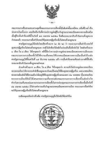 | Keywords: Registrar v Democrat (2010) Decision 002.jpg en <br>What Page 41 out of 42 of the Decision of the Constitutional Court of Thailand No 15/2553 dated November 29 2010 in the case Political Party Registrar v Democrat Party in which the Political Party Registrar entered a motion for a judicial order dissolving the Democrat Party and the Court dismissed the motion <br>Where Constitutional Court 2010 9 December Decision of the Constitutional Court No 15/2553 Online Available <http //www constitutionalcourt or th/index php option com_docman task cat_view gid 167 Itemid 94 lang th link> Accessed 9 December 2010 th <br>อะไร หน้า ๔๑ จากทั้งหมด ๔๒ ของ คำวินิจฉัยศาลรัฐธรรมนูญ ที่ ๑๕/๒๕๕๓ ลงวันที่ ๒๙ พฤศจิกายน ๒๕๕๓ ใน คดีระหว่างนายทะ บียนพรรคการ มือง กับพรรคประชาธิปัตย์ ซึ่งนายทะ บียนพรรคการ มืองมีคำร้องขอให้ศาลสั่งยุบพรรคประชาธิปัตย์ และศาลยกคำร้อง <br>ที่ไหน ศาลรัฐธรรมนูญ ๒๕๕๓ ๙ ธันวาคม คำวินิจฉัยศาลรัฐธรรมนูญ ที่ ๑๕/๒๕๕๓ ออนไลน์ ข้าถึงได้จาก <http //www constitutionalcourt or th/index php option com_docman task cat_view gid 167 Itemid 94 lang th ลิงก์> ข้าถึง มื่อ ๙ ธันวาคม ๒๕๕๓ 2010-12-09 own Clumsily PD-TH-exempt Registrar v Democrat 2010 |