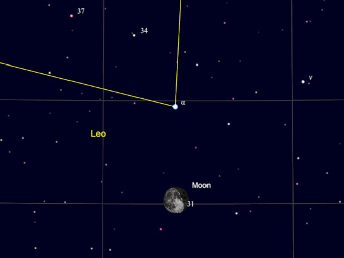 Keywords: The waning gibbous Moon passes south of Regulus at ~18:10 UT, 18th December 2016 news