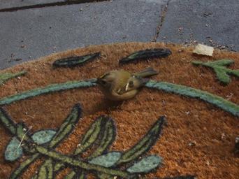 | Keywords: Regulus doormat02.JPG en Goldcrest Regulus regulus on my doormat one autumn day in Berlin Germany de Ein Goldhähnchen auf meiner Türmatte an einem Berliner Herbsttag nl Een goudhaantje neemt een kijkje op onze deurmat herfst 2009 own Simplexvir 2009-10-30 Regulus regulus Animals on mats |