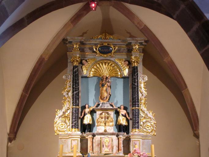 Keywords: Reichshoffen ChWohlfahrtshoffen 04.JPG Alsace Bas-Rhin Reichshoffen Wohlfahrtshoffen Chapelle Notre-Dame-du-Bon-Secours Maître-autel Vierge à l'enfant XVIIe-XVIIIe-XIXe own 2012 Ralph Hammann IM67007695 Altars in Chapelle Notre-Dame-du-Bon-Secours de Reichshoffen Photographs of Reichshoffen by Ralph Hammann Taken with Canon PowerShot SX20 IS Altars of Madonna and Child in France 17th-century altars in Alsace 19th-century altars in Alsace Cc-zero |