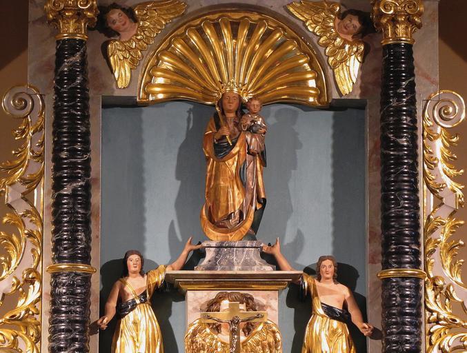 Keywords: Reichshoffen ChWohlfahrtshoffen 05.JPG Alsace Bas-Rhin Reichshoffen Wohlfahrtshoffen Chapelle Notre-Dame-du-Bon-Secours Maître-autel Vierge à l'enfant XVIIe-XVIIIe-XIXe own 2012 Ralph Hammann IM67007695 Altars in Chapelle Notre-Dame-du-Bon-Secours de Reichshoffen Photographs of Reichshoffen by Ralph Hammann Taken with Canon PowerShot SX20 IS Altars of Madonna and Child in France 17th-century altars in Alsace 19th-century altars in Alsace Baroque statues in Bas-Rhin Statues of Madonna and Child in Bas-Rhin Baroque reliefs in Alsace Reliefs of angels in Alsace Cc-zero |