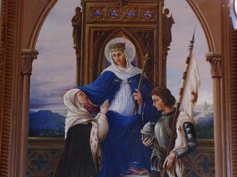 Keywords: Reichshoffen ChWohlfahrtshoffen 16.JPG Alsace Bas-Rhin Reichshoffen Wohlfahrtshoffen Chapelle Notre-Dame-du-Bon-Secours Détail de la peinture XXe de Paul Rudloff Vierge bénissant Bernadette Soubirous et Jeanne d'Arc own 2012 Ralph Hammann Interior of Chapelle Notre-Dame-du-Bon-Secours de Reichshoffen Photographs of Reichshoffen by Ralph Hammann Church paintings in Bas-Rhin Paintings of Jeanne d'Arc Paintings of Bernadette Soubirous Marian apparitions Taken with Canon PowerShot SX20 IS 20th-century church paintings in Alsace Cc-zero |