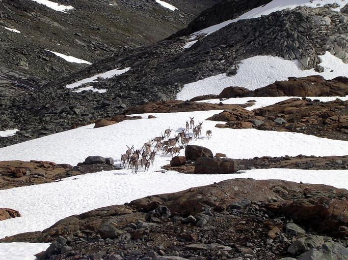 Keywords: Reindeer.jpg Wild reindeers in Jotunheimen near Surtningssui own 2005-07-24 Sondrekv Rangifer tarandus in Norway Rangifer tarandus tarandus Jotunheimen