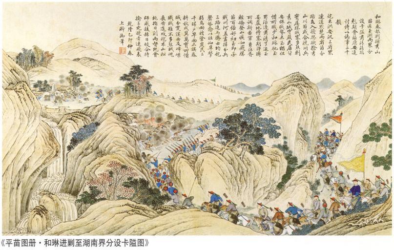 | Keywords: Reinforcements Arriving at the Battle against the Miao at Xiushan.jpg en A scene of the Chinese Campaign against the Miao Hunan 1795 zh-hans 平定苗疆战役之 剿捕 山苗匪 http //www battle-of-qurman com cn/e/hist htm late XVIII century A collaboration between Chinese and European painters The Jesuit missionaries involved in producing the drawings in China were Giuseppe Castiglione Jean-Denis Attiret Ignace Sichelbart and Jean Damascene The engravings were executed in Paris under the direction of Charles-Nicolas Cochin of the Académie Royal at the Court of Louis XVI and the individual engravers include Le Bas Aliamet Prevot Saint-Aubin Masquelier Choffard and Launay PD-Art Military of Qing China Ten Great Campaigns Paintings of the Qing Dynasty |