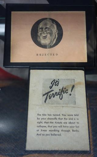 Keywords: Rejected & It's Terrific, German battlefield propaganda, World War II - Fort Devens Museum - DSC07170.JPG en Exhibit in the Fort Devens Museum 94 Jackson Road 305 Devens Massachusetts USA Photography was permitted in the museum without restriction 2013-06-07 10 46 26 own Daderot cc-zero Propaganda in the Fort Devens Museum Uploaded with UploadWizard Propaganda pamphlets World War II posters from Germany |