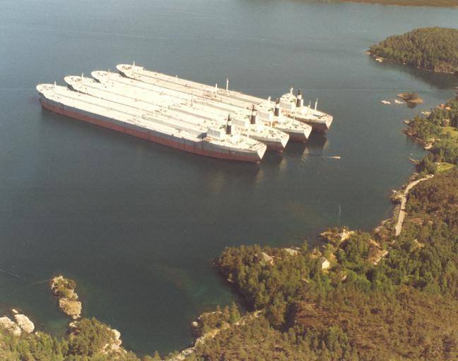 Keywords: Reksten 1970.jpg no Fire av Rekstens supertankere i opplag ved Onarheim på Tysnes fra venstre T/T Nerva T/T Aurelian T/T Kong Haakon VII og T/T Octavian en Four of Hilmar Reksten's tankers laid up at Onarheim Tysnes From left Nerva Aurelian Kong Haakon VII Octavian own Captain Gerhard 1976/2010 Hilmar Reksten Oil tankers Nerva ship 1970 Aurelian ship 1969 Kong Haakon VII ship 1969 Octavian ship 1971 Tysnes 1976 in Norway