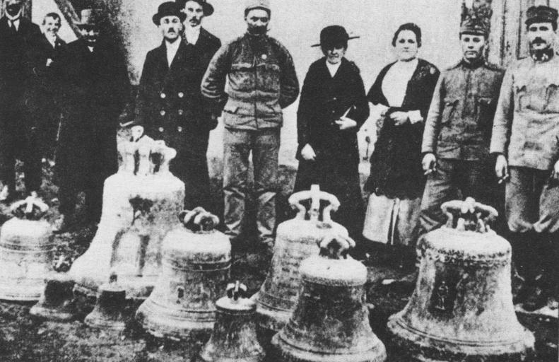 Keywords: Rekvírování zvonů 2.jpg en Detained bells of the Czech villages cs Zabavené svony z českých vesnic Léta zkázy a naděje Author 1 WW PD-old World War I home front in Austria-Hungary Czech lands during World War I Bells in the Czech Republic