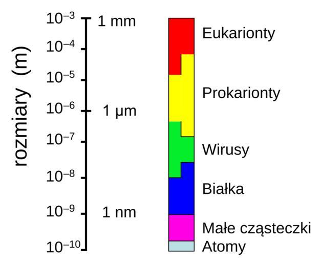 | Keywords: Relative scale pl.svg  en Relative scales of eukaryotes prokaryotes viruses proteins and atoms pl Porównanie rozmiarów prokariontów eukariontów wirusów białek i atomów tłumaczenie Image Relative scale svg Created by Peter Budai vectorized by Fvasconcellos left thumb Unlabeled version left thumb Hungarian version en Image Relative scale png Biology diagrams Diagrams in Polish |