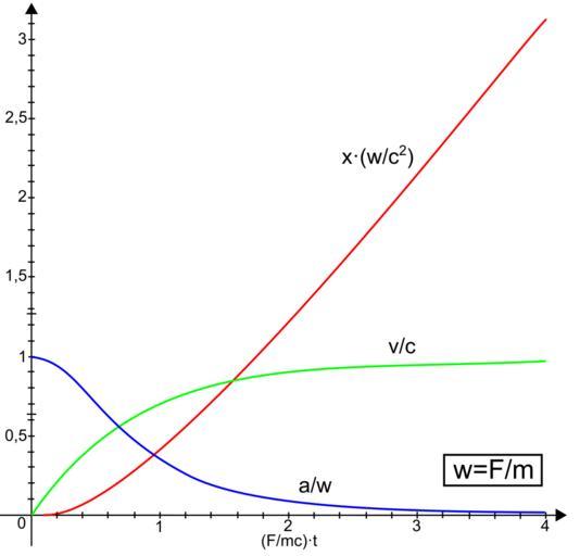 | Keywords: Relativistic-UAM.svg en Relativistic motion under constant force F with zero initial velocity acceleration blue velocity green displacement red Assymptotically the motion is uniform velocity motion with v c Relativistic-UAM png 2011-10-04 16 42 UTC Relativistic-UAM png Davius derivative work Robot8A <span class signature-talk >talk</span> SVG Robot8A Relativistic-UAM png own Davius 2010/May Kinematics</nowiki> Uploaded with derivativeFX Kinematics Special relativity | ||||