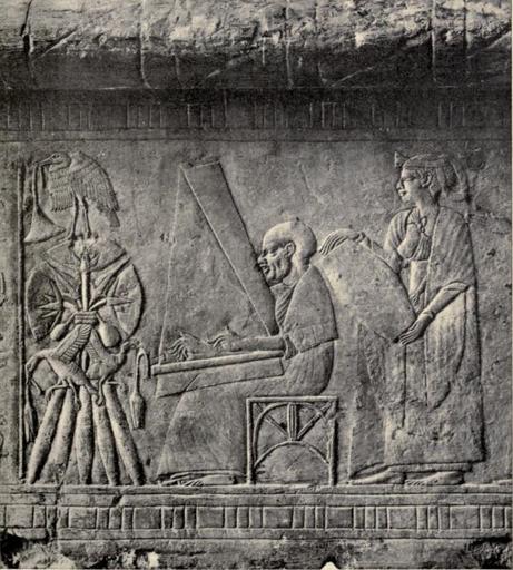 | Keywords: Relief harpist Weigall.jpg en A relief of the Saitic Period 26th Dynasty representing an old man playing upon a harp and a woman beating a drum Offerings of food and flowers are placed before them Alexandria Museum Photo by Emile Brugsch 1913 https //archive org/details/treasuryofancien00weigiala The treasury of ancient Egypt miscellaneous chapters on ancient Egyptian history and archaeology Chicago 1913 Arthur Weigall 1880 - 1934 other versions Custom license marker 2016 07 08 PD-old-auto-1923 1934 Reliefs of the 26th dynasty of Egypt PD US files by Khruner Harps in ancient Egypt Ancient Egyptian music Egyptian antiquities in the Alexandria National Museum |