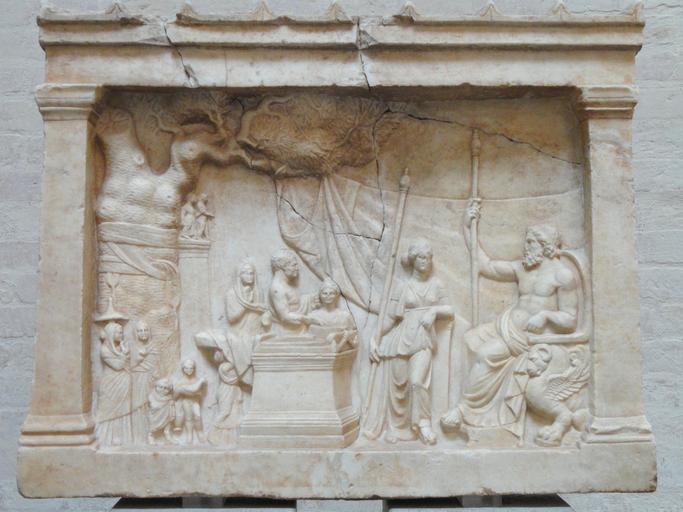 | Keywords: Relief rural votive place - 206 - Glyptothek Munich - DSC07363.jpg Weihrelief mit ländlicher Kultstätte Thronender Gott und Göttin heilige Platane Pfeiler mit kleinen Statuen des Götterpaars Altar und eine opfernde Familie Um 200 v Chr Rural votive place on a relief God and goddess on throne sacred platane column with little statues of the god pairs altar and an offering family Ca 200 BC Lieu de culte rural sur un relief votif Dieu et déesse sur un trône platane sacré colonne supportant une statue du couple divin autel et famille faisant une offrande V 200 av J -C H 62 cm Museum Glyptothek Munich Room 2 Saal des Faun object history credit line Acquired in Greece in 1882 accession number Inv 206 Daderot own 2011-05-01 other versions cc-zero Hellenistic sculptures in the Glyptothek Munich Religion in ancient Greece Glyptothek Munich - Room 2 |