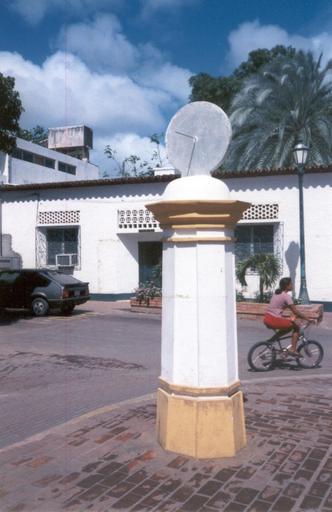 | Keywords: Reloj de sol Isla de Margarita.jpg es Un antiguo reloj de sol en la Asunción capital del Estado Nueva Esparta Venezuela en la isla de Margarita Tiene dos discos horarios adosados que coinciden con el paralelo de la ciudad El disco horario que mira hacia el norte se usa entre los meses de abril y agosto mientras que el resto del año se usa el disco orientado hacia el sur own 1998-03 Alberto J Rodríguez Díaz Con autorización Arismendi Municipality Nueva Esparta Disk-shaped equatorial sundials Sundials in Venezuela |