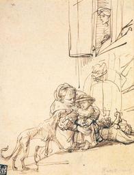 View Original:rembrandt_woman_with_child_frightened_dog_1636.jpg (606x793)