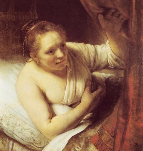 | Keywords: RembrandtHendrickje.jpg Rembrandt Rembrandt van Rijn - A Woman in Bed - Google Art Project - cropped jpg Oil canvas cm 81 3 68 National Gallery of Scotland object history credit line accession number Scanned myself PD-old-100 <gallery> File Rembrandt Rembrandt van Rijn - A Woman in Bed - Google Art Project jpg File Rembrandt Rembrandt van Rijn - A Woman in Bed - Google Art Project - cropped jpg File Rembrandt Harmensz van Rijn 066 jpg File Rembrandt Harmensz van Rijn 066 png </gallery> Portrait paintings of women Women in bed in art Watching in art Genre paintings by Rembrandt 1645 Woman In Bed Detail Hendrickje Stoffels Facial expressions in art Location of museum or gallery missing |