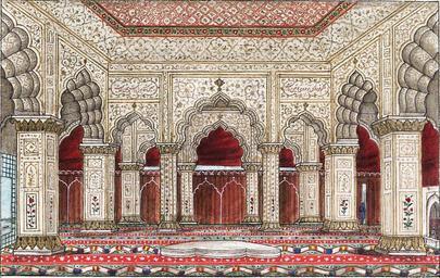 | Keywords: Reminiscences of Imperial Delhi The interior of the Diwan-i Khass.png The Dewan-e-Khafs or Audience Hall for the Nobility was constructed by the Emperor Shah Juhan by whom the Royal Palace was also built It is situated at the upper end of a spacious Square elevated upon a Terrace of white Marble about four Feet in height The Dewan-e-Khafs in former times was adorned with Excessive Magnificence and though plundered by Nadir Shah the King of Persia during his invasion in 1738/9 and subsequently mutilated by the Barbarous Hordes of Mahrattas during the later end of the past and beginning of the present Century still retains sufficient Beauty to render it the object of Admiration The dimensions are said to be 150 feet in length by 40 in breadth The roof is flat supported by numerous Columns of white Marble richly ornamented with inlaid flower Work of different coloured Stones chiefly Cornelian The Cornices and Borders being decorated with Frieze and Sculptured work The Cieling sic was formerly incrusted with a rich Foliage of Gold and Silver Work throughout its whole Extent This during the Period of Anarchy was removed and an imitation Ceiling which still exists substituted In the interior of the Building and in the Cornice are the following lines written in the Persian Character in letters of Gold In Persian agar firdaus bar rui zamin ast hamin ast va hamin ast va hamin ast Ugur Firdoce bur Rooe Zumeen ust Humeen usto Humeen usto Humeen ust If there be a Paradise upon Earth It is this It is this It is this The Diwan-i Khass from the west with canopies and screens The Red Fort was commissioned by Shah Jahan r 1627-58 in 1639 it took nine years to build and was the seat of the Mughal power until 1857 when Bahadur Shah Zafar the last Mughal emperor was dethroned and exiled Part of the palace complex the Diwan-i-Khas or Hall of Private Audience was where the emperor would consult with his advisors and meet important visitors The hall was built entirely of white marble inlaid with precious stones The hall ™s ceiling was once silver which was removed by the Marathas and the spectacular Peacock throne was taken by Nadir Shah of Persia in 1739 Inscribed naqsha-i divan-i khass andarun-i qil ˜a-i shahjahanabad Mazhar ˜Ali Khan The interior of the Diwan-i Khass with qanats concealing the Khwabgah and the Scales of Justice Inscribed naqsha-i andarun-i divan-i khass dar qil ˜a-i shahjahanabad taraf-i shamal hast ˜amal-i Mazhar ˜Ali Khan From 'Reminiscences of Imperial Delhi ™ an album consisting of 89 folios containing approximately 130 paintings of views of the Mughal and pre-Mughal monuments of Delhi as well as other contemporary material with an accompanying manuscript text written by Sir Thomas Theophilus Metcalfe 1795-1853 the Governor-General ™s Agent at the imperial court Acquired with the assistance of the Heritage Lottery Fund and of the National Art-Collections Fund http //www bl uk/onlinegallery/onlineex/apac/addorimss/t/019addor0005475u00021vrb html 1843 creator Thomas Theophilus Metcalfe 100px Same view without shamiana covers PD-old-100 Diwan-i-Khas Red Fort Red Fort in art Reminiscences of Imperial Delhi Thomas Theophilus Metcalfe |