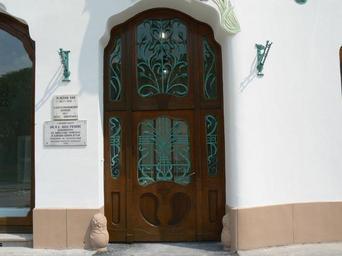 Keywords: Reök6KJ.jpg Art Nouveau door with wrought iron grille ” Reök Palace in Szeged Hungary Reök Palota Szeged hu A REÖK Regionális ÖsszképzÅ‘művészet Központ bejárata Own Kozma János 2007 Reök Palace Art Nouveau doors Doors in Szeged Art Nouveau wrought iron Grilles architecture in Hungary |