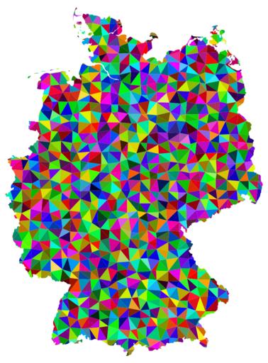 Keywords: republic germany deutschland map geography cartography outline europe country nation borders eu european union colorful prismatic chromatic rainbow triangles low poly polygon abstract geometric art
