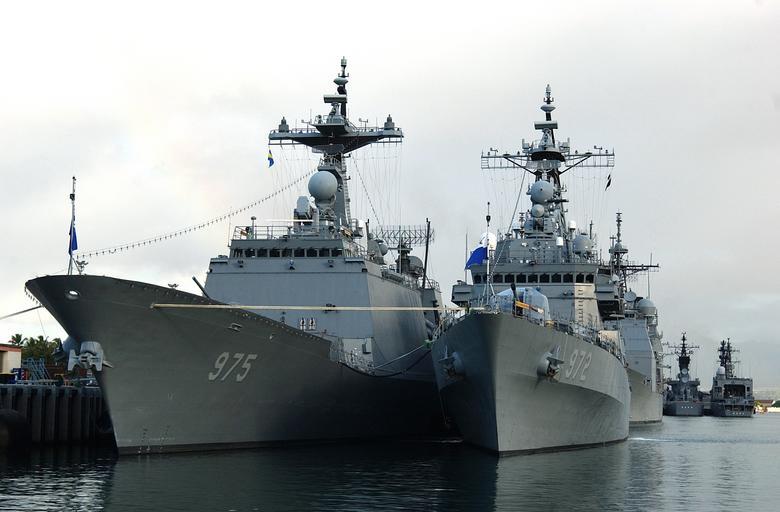 | Keywords: Republic of Korea Destroyers Yi (DDG 975) and Euljimundok (DDG 972).jpg ì§§ì 설명 http //www news navy mil/view_single asp id 15780 040702-N-6932B-002 Pearl Harbor Hawaii July 2 2004 The Republic of Korea Destroyers Yi DDG 975 and Euljimundok DDG 972 sit moored at Naval Station Pearl Harbor Hawaii There are currently four Korean ships in Pearl Harbor participating in the multi-national maritime exercise Rim of the Pacific 2004 RIMPAC RIMPAC is the largest international maritime exercise in the waters around the Hawaiian Islands This year ™s exercise includes seven participating nations; Australia Canada Chile Japan South Korea United Kingdom and United States RIMPAC is intended to enhance the tactical proficiency of participating units in a wide array of combined operations at sea while enhancing stability in the Pacific Rim region U S Navy photo by Photographer's Mate 2nd Class 2nd Class Richard J Brunson RELEASED For more information go to http //www cpf navy mil/RIMPAC2004/ PD-USGov-Military-Navy ROKS Euljimundok DDH 972 ROKS Chungmugong Yi Sun-sin DDH-975 RIMPAC 2004 Taken with Nikon D1H |