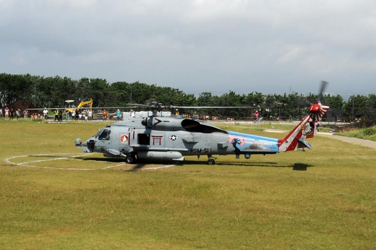 Keywords: Rescue drill 130901-N-DS193-070.jpg en A U S Navy MH-60R Seahawk helicopter assigned to Helicopter Maritime Strike Squadron 51 lands at Tagonoura Park to pick up a simulated tsunami victim for transport to the Japan Maritime Self-Defense Force destroyer JDS Murasame during a Shizuoka prefectural government-sponsored disaster relief drill in Fuji Shizuoka prefecture Japan Sept 1 2013 U S and Japanese forces worked with local first responders during the event to train as a joint task force providing disaster response during a simulated earthquake and subsequent tsunami 2013-09-01 HSM https //www dvidshub net/image/1010951 130901-N-DS193-070 2013-09-05 22 37 FUJI AICHI JP PD-USGov-Military-Navy MH-60R Seahawk Images from DoD uploaded by Fæ |