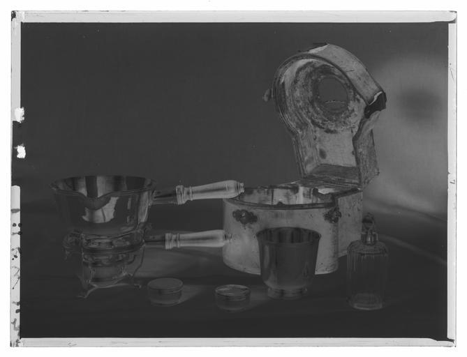 Keywords: Resekök - Livrustkammaren - 28358-negative.tif LSH artwork Gustaf Stafhell d ä Guldsmed 1683-1762 sv Stämplar på bottnens undersida Stockholm SS nr 526 Stafhell SS nr 527 N SS nr 528 åldermansranka Gustaf Stafhell d ä Stockholm 1749 Kastrull av förgyllt silver rund med uppåt vidgade väggar rundad övergång till bottnen på utsidan holk av förgyllt silver och urskruvbart svarvat handtag av ebenholz l 115 mm gängat silverrör i ena änden Vinkelrätt mot handtaget är kastrullens kant nerböjd till snås På livet graverat AF under kunglig krona original caption Resekök 1749 silver - ebony g 603 size mm 75 303 170 LRK Statens historiska museum Kronans silvermagasin Adolf Fredrik av Sverige Konungen reser 2000-2001 Helsinki Stafhell Gustaf Andersson Stafhell place of origin original filename LN_E05509 36472 inventory number LRK 16 28358 CC0 Resekök - Livrustkammaren - 28358 tif <gallery caption Different images of same object > File Detalj stämplar på kastrull - Livrustkammaren - 19797 tif File Resekök - Livrustkammaren - 45477 tif File Resekök - Livrustkammaren - 79720 tif File Resekök - Livrustkammaren - 11234 tif File Resekök - Livrustkammaren - 2674 tif File Resekök - Livrustkammaren - 19796 tif File Kastrull tillhörande Adolf Fredriks resekök nr 16-23 - Livrustkammaren - 11235 tif File Namnchiffer kastrull - Livrustkammaren - 2675 tif </gallery> <gallery caption Related objects > File Glasflaska tillhörande Adolf Fredriks resekök - Livrustkammaren - 71161 tif LRK 22 File Resekök - Livrustkammaren - 62599 tif LRK 22 File Resekök - Livrustkammaren - 54038 tif LRK 22 </gallery> |