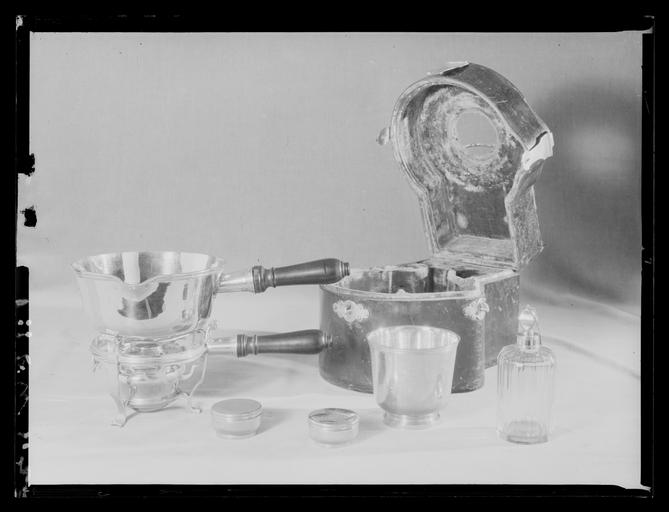 Keywords: Resekök - Livrustkammaren - 28358.tif LSH artwork Gustaf Stafhell d ä Guldsmed 1683-1762 sv Stämplar på bottnens undersida Stockholm SS nr 526 Stafhell SS nr 527 N SS nr 528 åldermansranka Gustaf Stafhell d ä Stockholm 1749 Kastrull av förgyllt silver rund med uppåt vidgade väggar rundad övergång till bottnen på utsidan holk av förgyllt silver och urskruvbart svarvat handtag av ebenholz l 115 mm gängat silverrör i ena änden Vinkelrätt mot handtaget är kastrullens kant nerböjd till snås På livet graverat AF under kunglig krona original caption Resekök 1749 silver - ebony g 603 size mm 75 303 170 LRK Statens historiska museum Kronans silvermagasin Adolf Fredrik av Sverige Konungen reser 2000-2001 Helsinki Stafhell Gustaf Andersson Stafhell place of origin original filename LN_E05509 36472 inventory number LRK 16 28358 CC0 Resekök - Livrustkammaren - 28358-negative tif <gallery caption Different images of same object > File Detalj stämplar på kastrull - Livrustkammaren - 19797 tif File Resekök - Livrustkammaren - 45477 tif File Resekök - Livrustkammaren - 79720 tif File Resekök - Livrustkammaren - 11234 tif File Resekök - Livrustkammaren - 2674 tif File Resekök - Livrustkammaren - 19796 tif File Kastrull tillhörande Adolf Fredriks resekök nr 16-23 - Livrustkammaren - 11235 tif File Namnchiffer kastrull - Livrustkammaren - 2675 tif </gallery> <gallery caption Related objects > File Glasflaska tillhörande Adolf Fredriks resekök - Livrustkammaren - 71161 tif LRK 22 File Resekök - Livrustkammaren - 62599 tif LRK 22 File Resekök - Livrustkammaren - 54038 tif LRK 22 </gallery> Kitchen utensils Media contributed by LSH unmatched creator Media contributed by LSH 2016-12 |