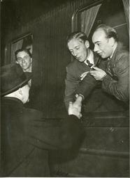 Keywords: reservepoliti vårslipp 2012 vårslipp2012 vårslipp andre verdenskrig andreverdenskrig norske flyktninger i sverige under krigen norskeflyktningerisverigeunderkrigen people 1200 nordmenn fra reservepolitiforlegningen på Øreryd var onsdag 6. desember 1944 gjester i Göteborg, hvor de fikk en hjertelig mottagelse av vertskapet –Göteborgs-Posten ivrig assistert av Karl Gerhard og Gøteborgs politiorganisasjoner. Bildet viser: den norske konsul i Göteborg, Fuglesang, tar avskjed med guttene fra Øreryd. RA/PA-1209/Uc/68/4/S 5427 1200 nordmenn fra reservepolitiforlegningen på Øreryd var onsdag 6. desember 1944 gjester i Göteborg, hvor de fikk en hjertelig mottagelse av vertskapet –Göteborgs-Posten ivrig assistert av Karl Gerhard og Gøteborgs politiorganisasjoner. Bildet viser: den norske konsul i Göteborg, Fuglesang, tar avskjed med guttene fra Øreryd. RA/PA-1209/Uc/68/4/S 5427