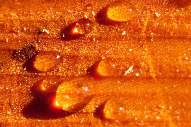 Keywords: resin bitumen tree pruning spring cut lebendharzung deciduous tree wound resin discharge harz exit close wood tribe gold yellow