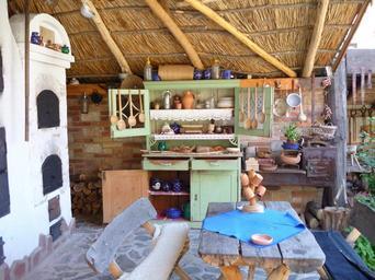 Keywords: restaurant oven table seating area cozy hof courtyard covered blacksmithing eat sound mug buffet kitchen cabinet sit local hungary tihany old stuff old dishes