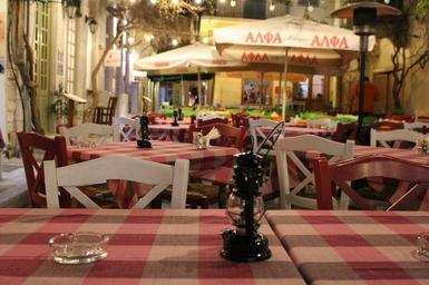 Keywords: Restaurant Tables.JPG en Restaurant Tables in Ermoupolis 2015-04-23 21 06 12 own Zacharias Mitzelos other versions cc-zero Uploaded with UploadWizard Syros-Ermoupoli
