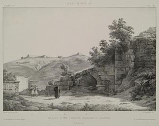 | Keywords: Restes d'un théâtre romain à Smyrne - Rey Etienne - 1867.jpg en Étienne Rey Voyage Pittoresque en Grèce et dans le Levant fait en 1843-1844 vols Ι-ΙΙ Lyon Louis Perrin MDCCCLXVII 1867 1843-1844 http //eng travelogues gr/collection php view 252 Creator Étienne Rey other versions Custom license marker 2016 04 22 PD-old PD-1996 Voyage Pittoresque en Grèce et dans le Levant 1867 | ||||