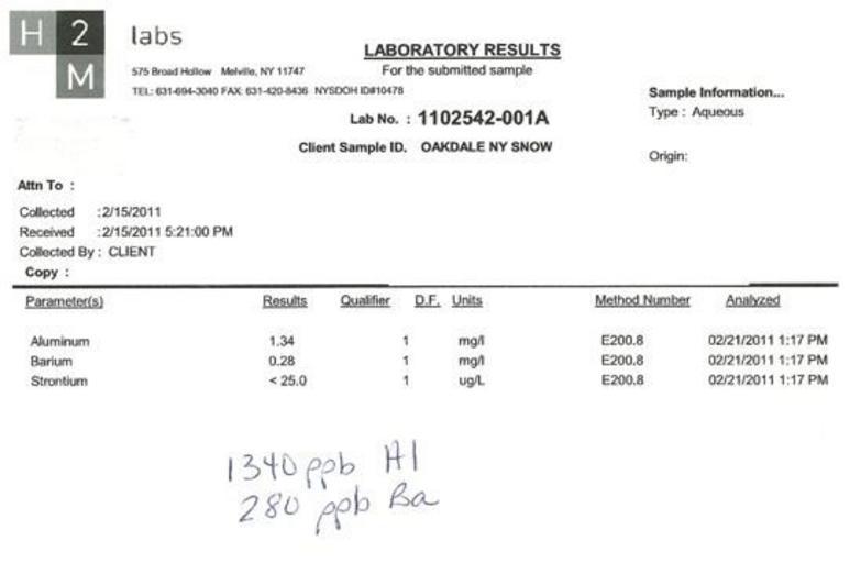 Keywords: Results 2.jpg en Chemtrails metals in snow from the ground Lab Results own Willow2012 2011 Cc-zero Chemtrail conspiracy theory