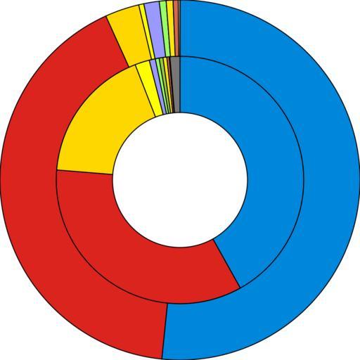 | Keywords: Results of the UK General Election, 1992.svg United Kingdom general election 1992 displayed in a ring chart The inside ring shows the proportion of the vote each party got The outside ring shows the number of seats each party got Standard party colors from the English Wikipedia are used Own work by uploader source code H2g2bob 2009-08-18 Election apportionment diagrams of the United Kingdom | ||||