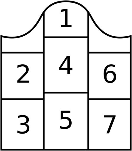 | Keywords: Retabel Loenhout (schematisch).svg nl Schematische weergave van het Quirinusretabel van Loenhout Een kindje staat recht op een doek dat vastgehouden wordt door twee engelen Quirinus wordt naar Aurelianus gebracht Zijn hand wordt afgehakt Quirinus wordt gekookt in een vat met olie Quirinus wordt over de straatstenen gesleept Onduidelijk tafereel De ogen van Quirinus worden uitgestoken Quirinus hangt over een dwarsbalk met een molensteen aan zijn nek en aan zijn voeten 2015 own Tom-L other versions cc-zero Loenhout |