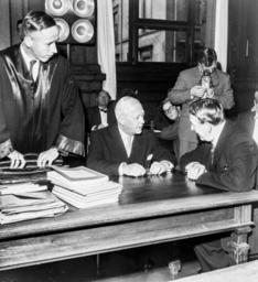 | Keywords: rettsak litteratur forfattere oslo norge blackandwhite monochrome black and white Behandling av ankesak i Høyesterett 9. mai 1958 i forbindelse med utgivelsen av Sangen om den røde rubin.  Fra venstre: Forsvarer høyesterettsadvokat Knut Blom, Harald Grieg, forlagsredaktør i Gyldendal, og Francis Bull, styreformann i Gyldendal.   Fotograf: Fjørtoft, Bjørn, Billedbladet NÅ, Riksarkivet (RA/PA-0797/U/Ue/L0064/0012) Behandling av ankesak i Høyesterett 9. mai 1958 i forbindelse med utgivelsen av Sangen om den røde rubin.  Fra venstre: Forsvarer høyesterettsadvokat Knut Blom, Harald Grieg, forlagsredaktør i Gyldendal, og Francis Bull, styreformann i Gyldendal.   Fotograf: Fjørtoft, Bjørn, Billedbladet NÅ, Riksarkivet (RA/PA-0797/U/Ue/L0064/0012)  |