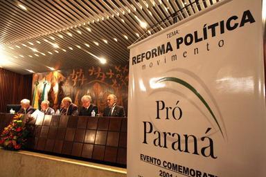 | Keywords: Nesta segunda-feira (14), durante a abertura da reunião do Movimento Pró-Paraná para discutir a Reforma Política, no Plenarinho da Assembleia Legislativa, o presidente da AL, deputado Valdir Rossoni (PSDB), revelou a existência de uma verdadeira “indústria de aposentadorias” na Casa. “Montamos uma força-tarefa de diretores que está fazendo o levantamento de cada aposentadoria. Já encontramos o caso de uma pessoa que se aposentou ganhando R$ 4 mil e, da noite para o dia, essa aposentadoria saltou para R$ 17 mil”. Leia matéria no site www.alep.pr.gov.br Foto: Nani Gois / Assembleia Legislativa do Paraná |