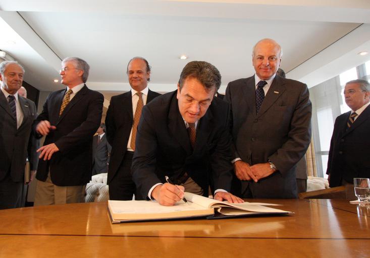 | Keywords: O presidente da AL, deputado Valdir Rossoni, e o 1º secretário, deputado Plauto Miró, particiram nesta quarta-feira (23) de uma reunião/almoço com conselheiros e diretores da Associação Comercial do Paraná (ACP). Foto: Nani Gois / Assembleia Legislativa do Paraná |