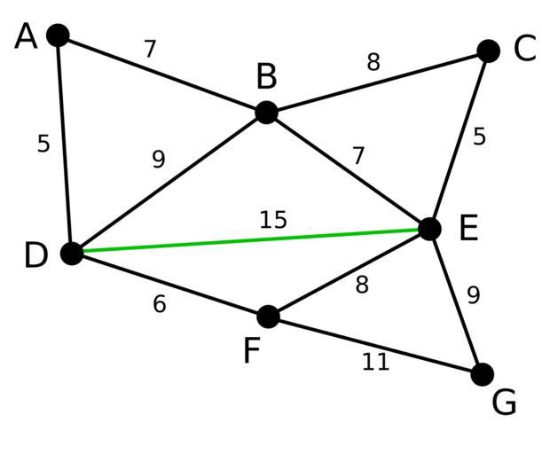 | Keywords: Reverse Delete 1.svg The algorithm will start with the maximum weighted edge which in this case is DE with an edge weight of 15 Since deleting edge DE does not further disconnect the graph it is deleted Transferred from http //en wikipedia org en wikipedia; transferred to Commons by User Sefid par using http //tools wikimedia de/~magnus/commonshelper php CommonsHelper <br/> Original text self-made 2008-02-07 Terencehonles talk Original uploader was Terencehonles at http //en wikipedia org en wikipedia Released into the public domain by the author en wikipedia Terencehonles Original upload log page en wikipedia Reverse_Delete_1 svg 2008-02-07 09 55 Terencehonles 618×518× 18560 bytes <nowiki> self-made ~~~ </nowiki> Reverse Delete n |